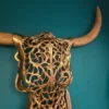 Gold Metal Tribal Bison Wall Head
