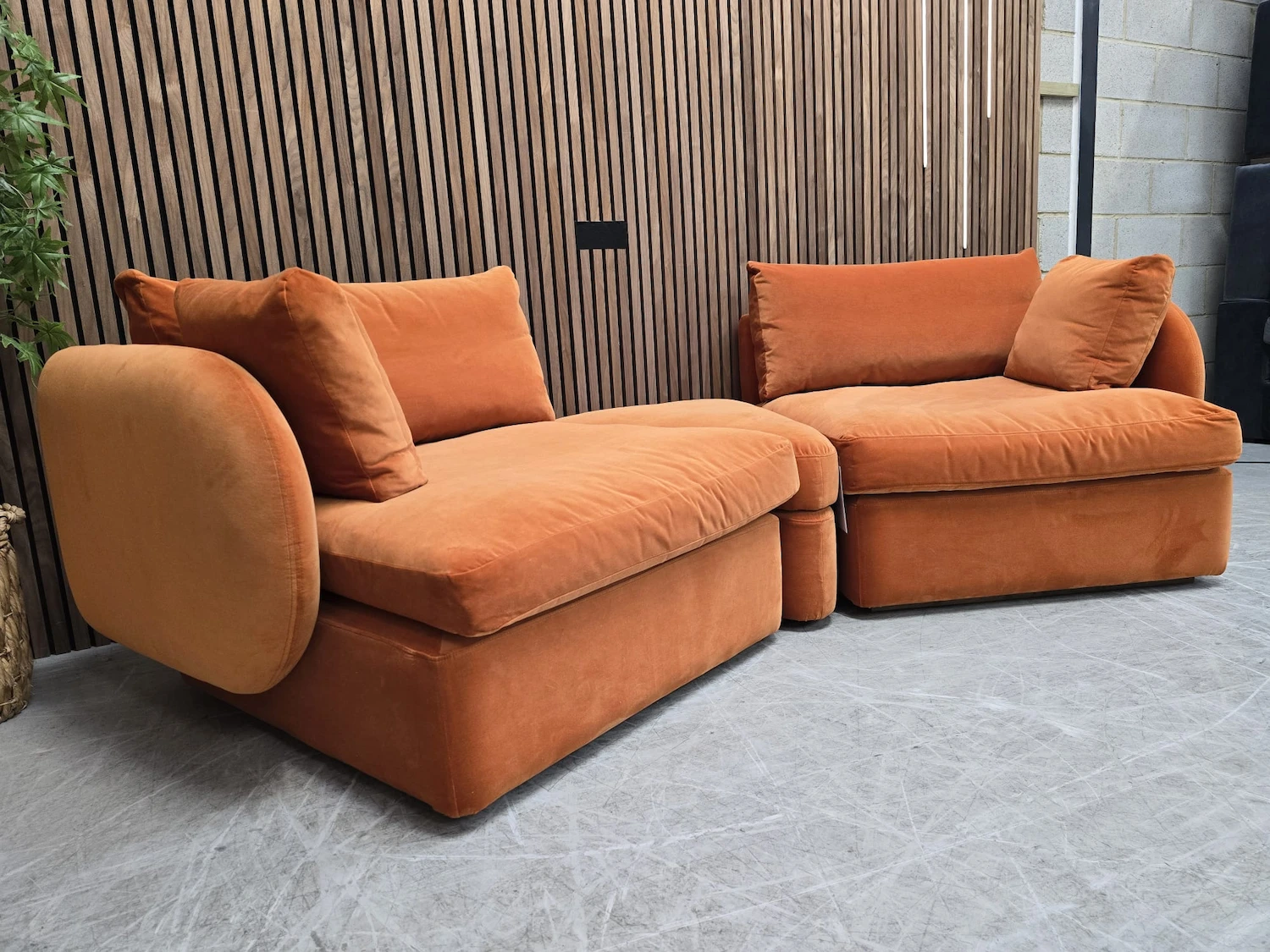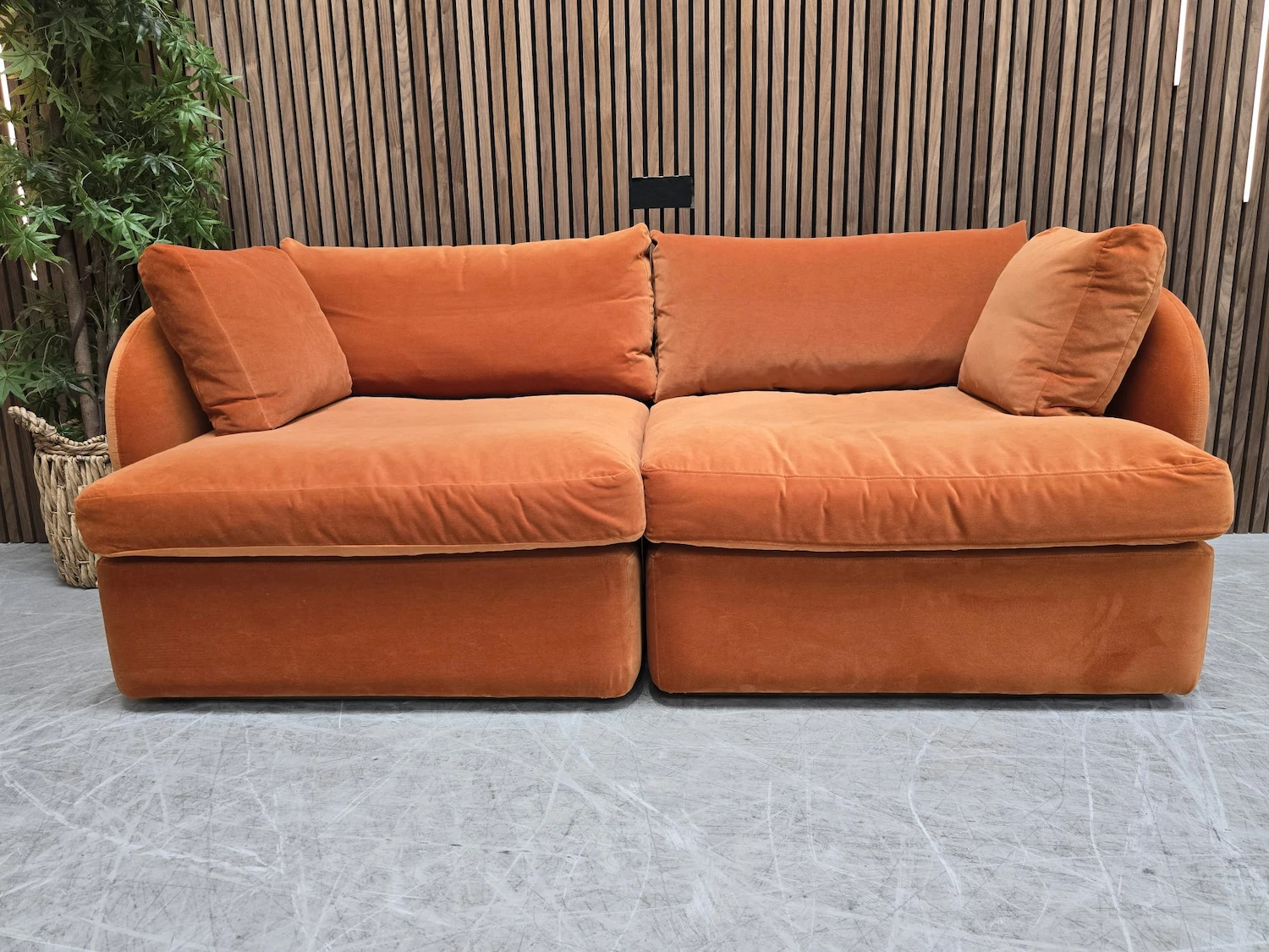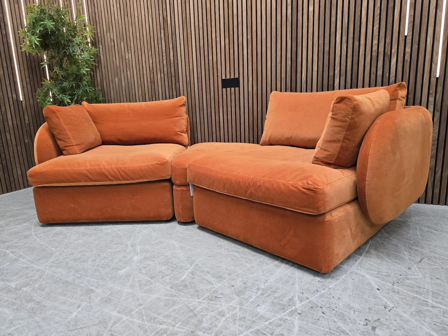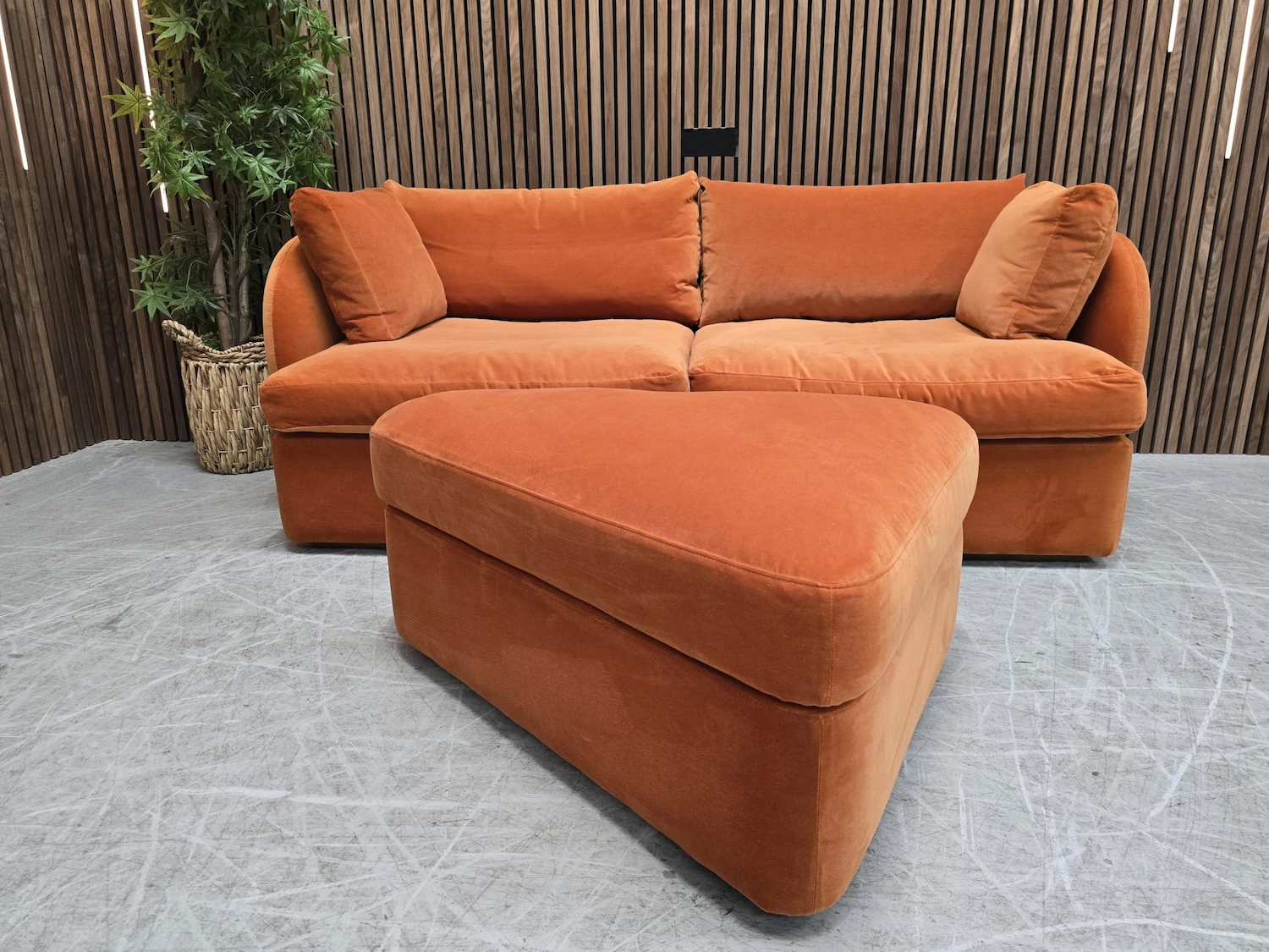 Sofa.com Ren Modular Sofa & Wedge Storage Footstool In Paprika Smart Velvet RRP-£3420