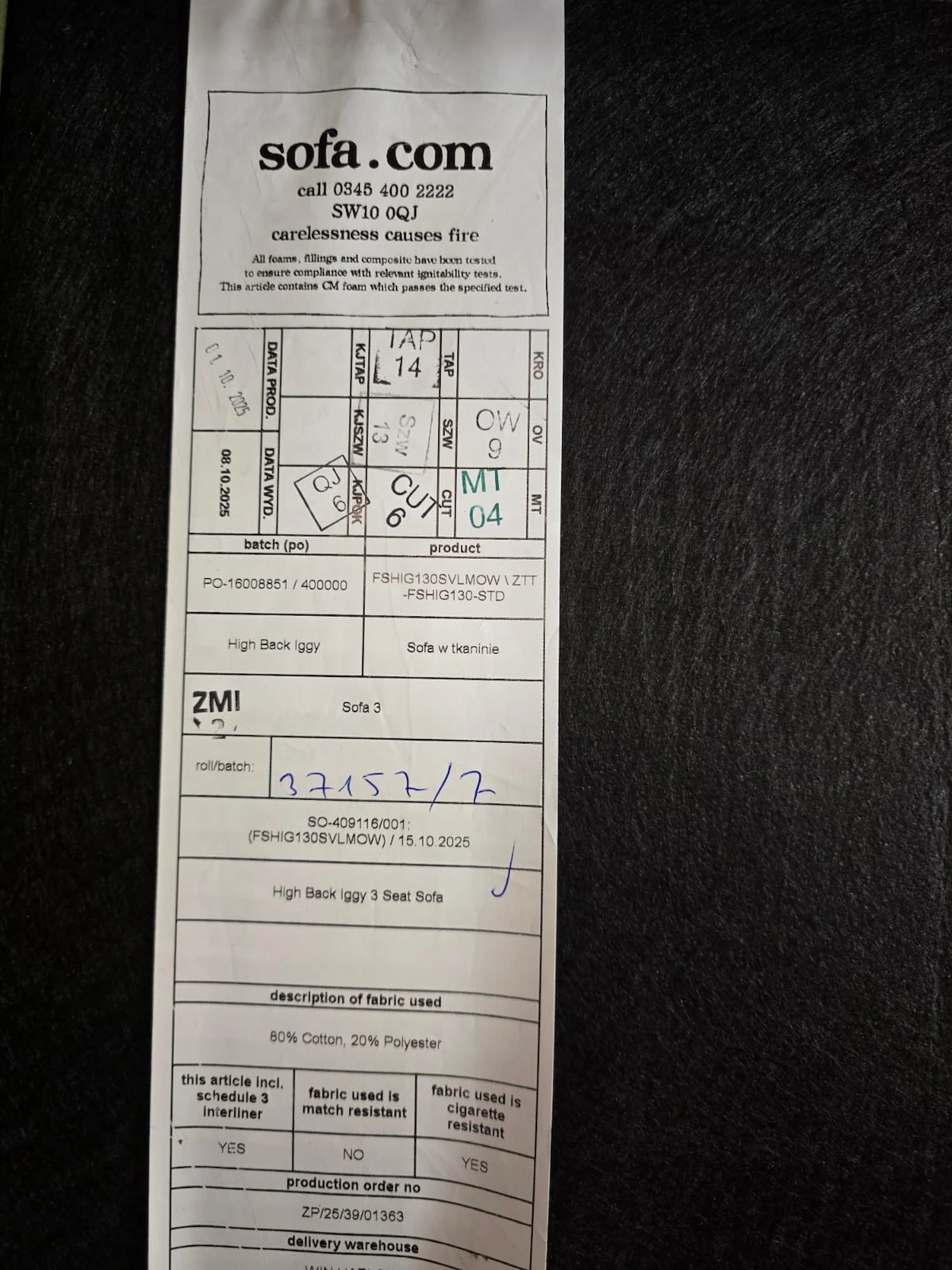 Sofa.com Iggy High Back 3 Seater In Meadow Smart Velvet