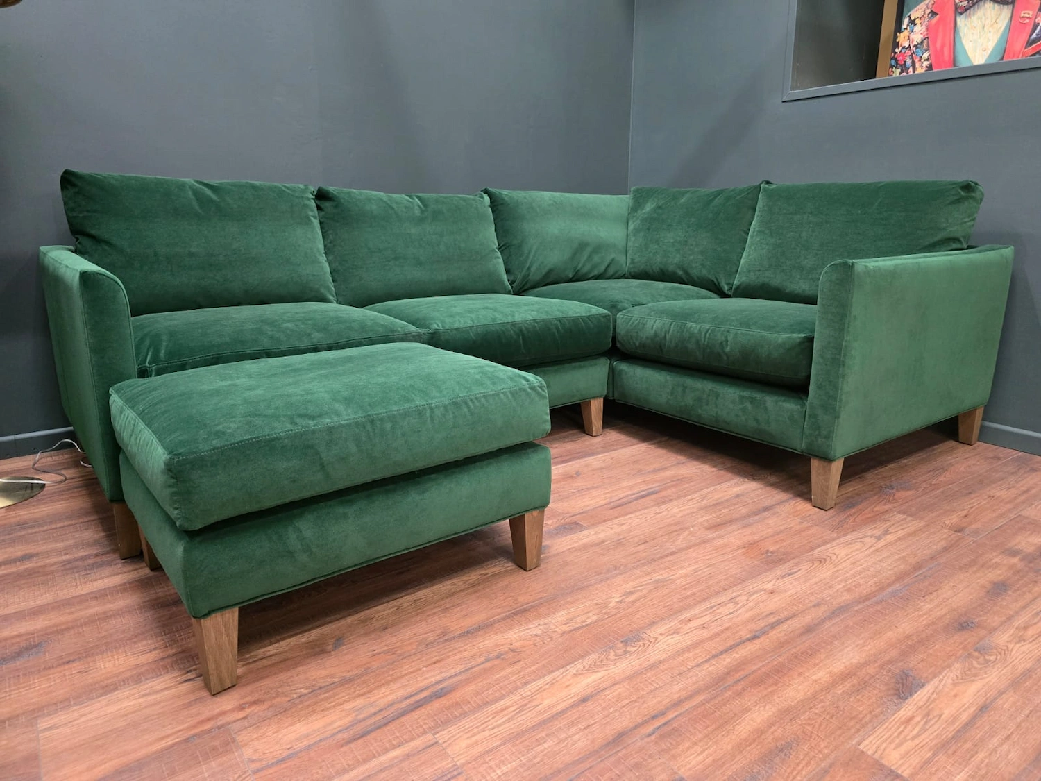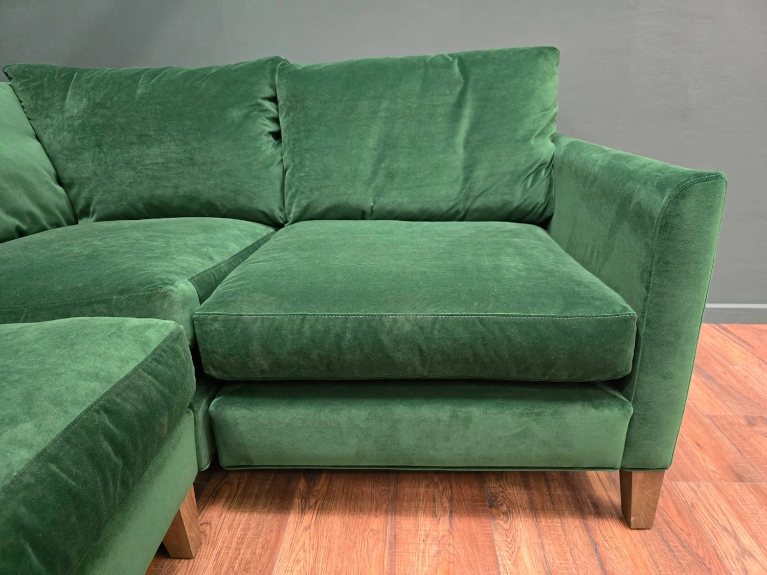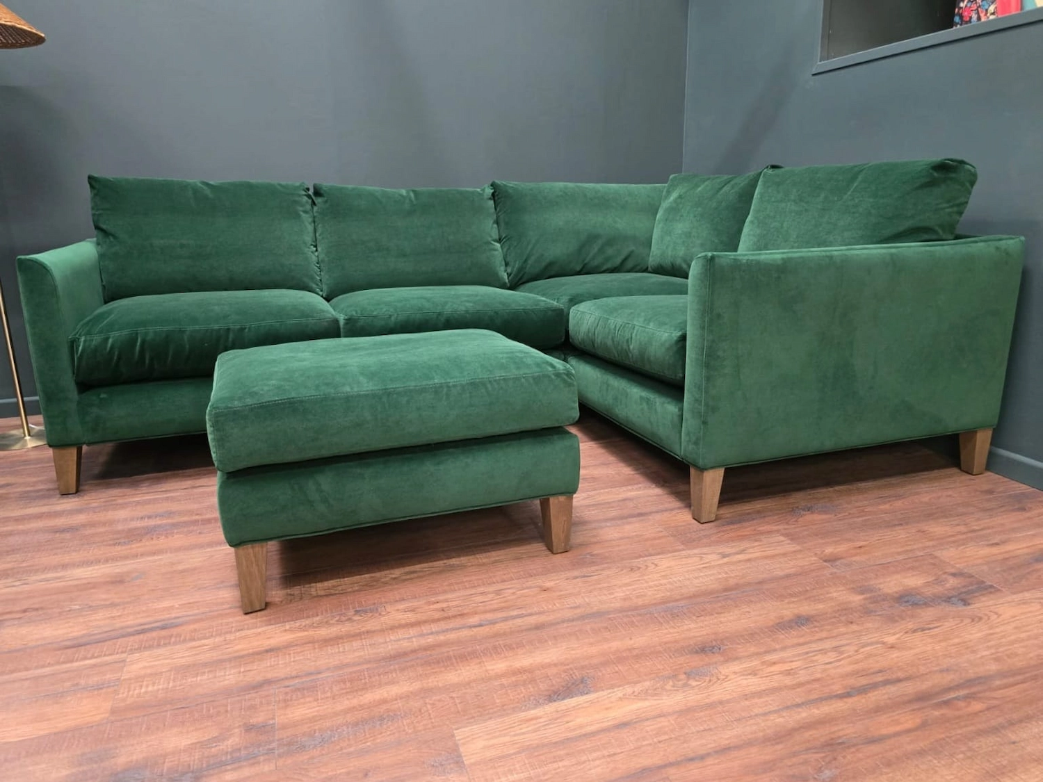 Sofa.com Izzy RHF Sectional Corner Sofa & Footstool In Putting Green Aquaclean Clever Velvet RRP-£4360