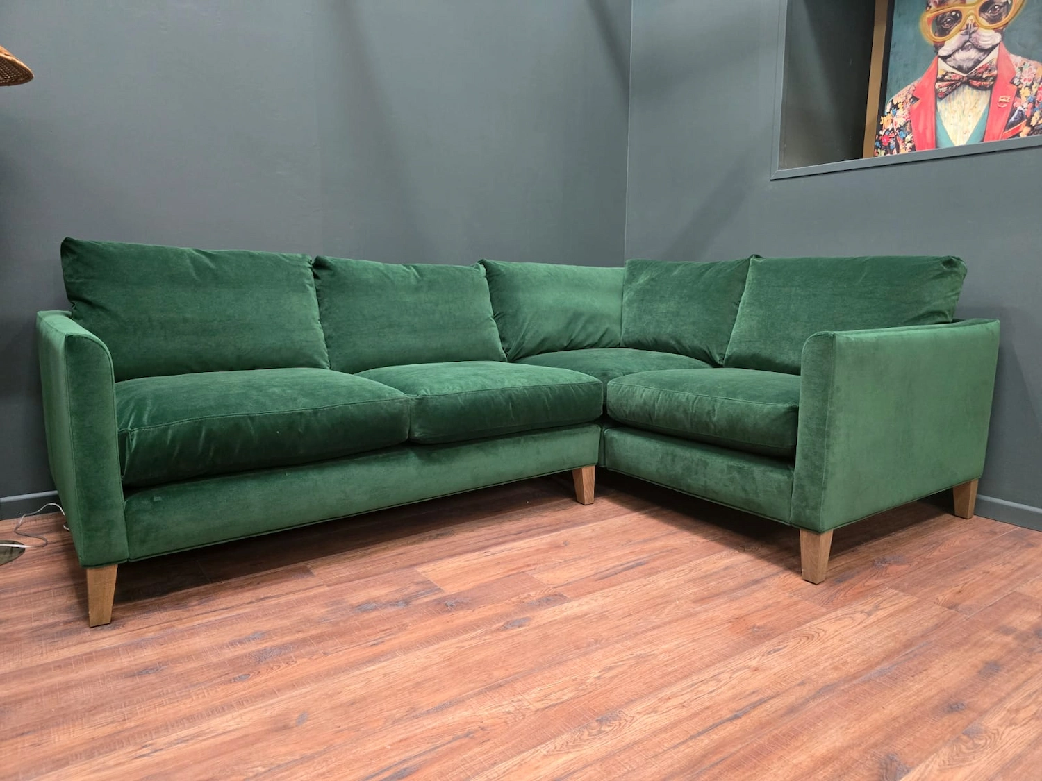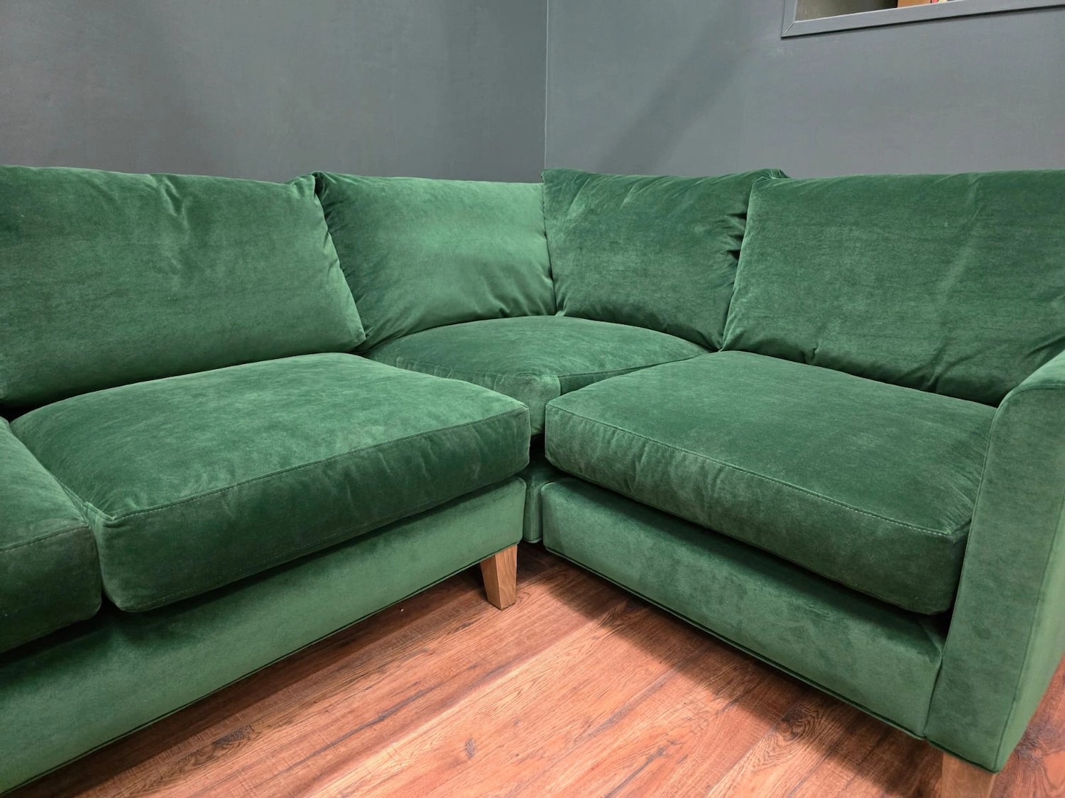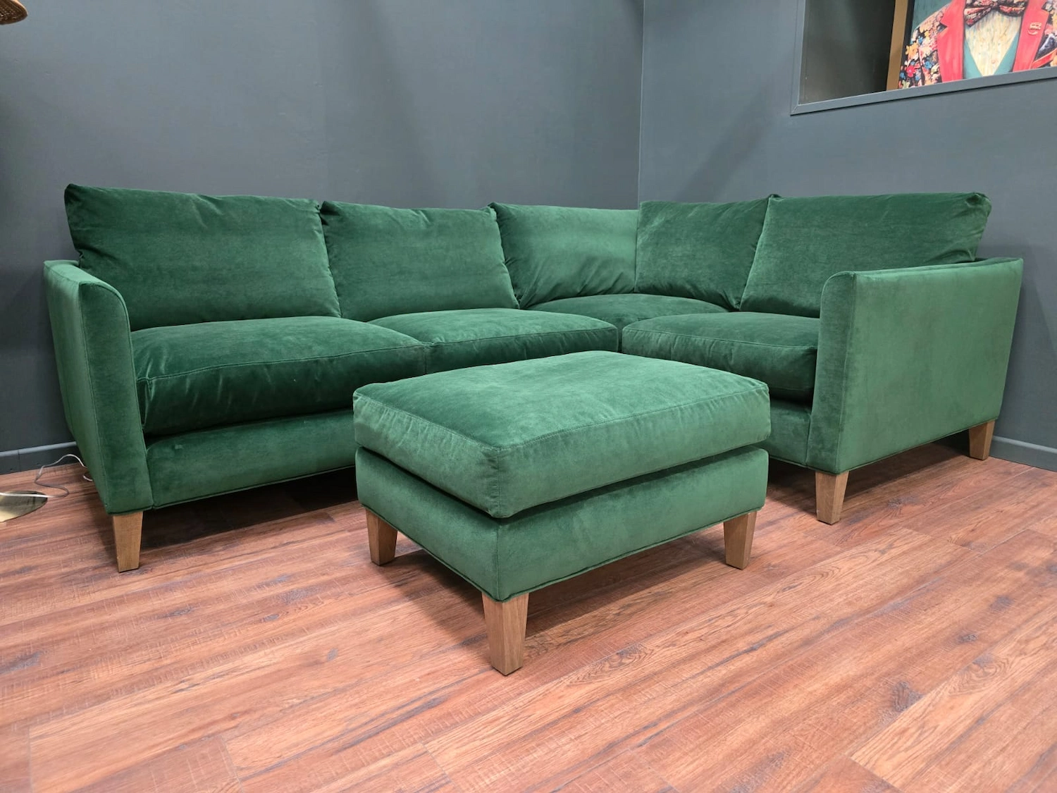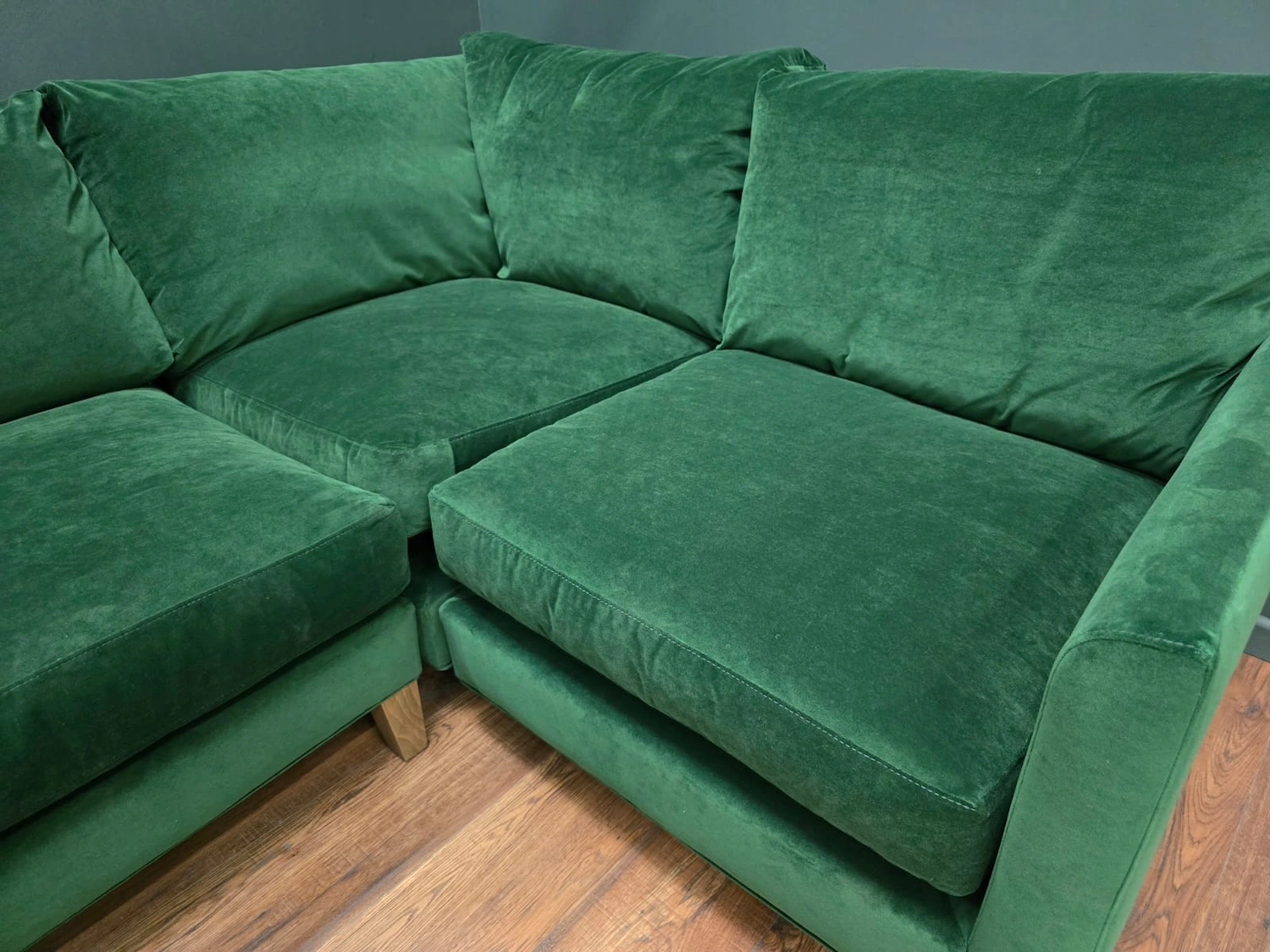Sofa.com Izzy RHF Sectional Corner Sofa & Footstool In Putting Green Aquaclean Clever Velvet RRP-£4360