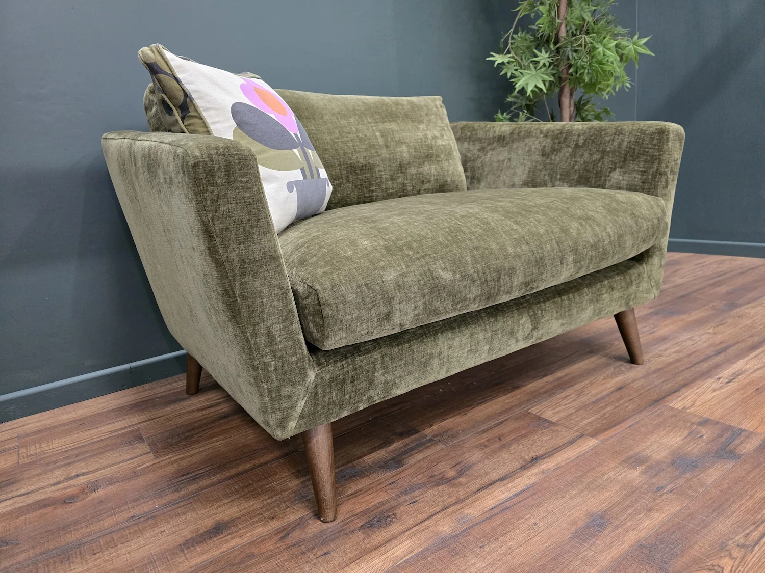 Designer Label Retro Modern Loveseat In Moss RRP-£1199